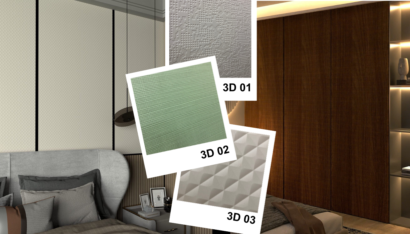 + Bề mặt ép 3D công nghệ hiện đại (mã 01 – 02 – 03). Các bề mặt vân nổi tinh tế như quả trám, hình khối,….